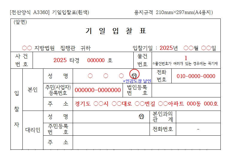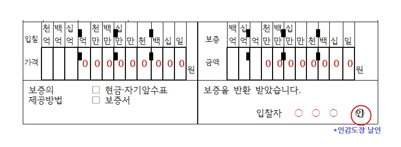 무엇보다 중요한 것은 금액을 잘 기입하는 것으로 도장이 안 찍혔거나 하는 부분은 법원에 따라서 어느 정도 보완을 해주는 곳도 있지만 금액을 잘못 입력을 하거나 보증금이 적게 들어 있는 경우는 그 어떤 경우에도 보완을 해주지 않고 바로 취소가 되어 버리니 제출하기 전에 몇 번이고 꼭 확인을 해 보시기 바랍니다