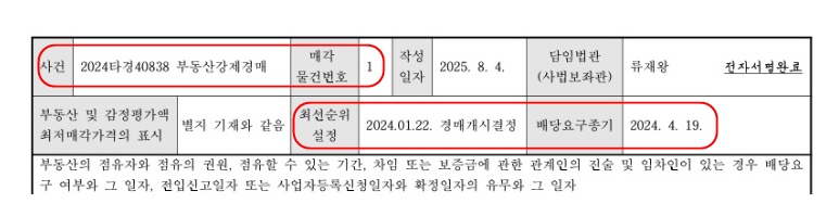 배당요구종기는 임차인이 배당요구를 할 수 있는 기한을 알려주는 것으로 이때까지 배당요구를 하지 않으면 더 이상 할 수가 없습니다