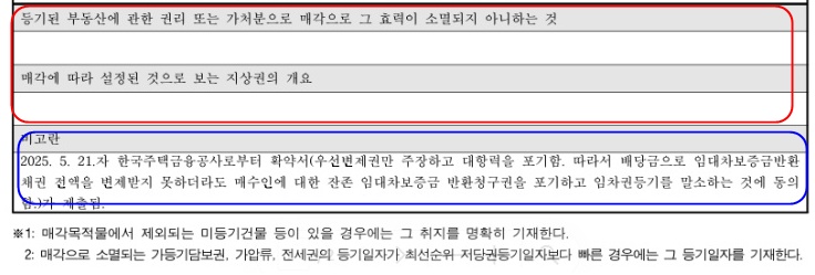그 아래 비고란은 나중에 추가가 되어서 수정이 된 내용으로 대항력을 포기했다는 내용이니 부담 없이 낙찰을 받아도 된다는 말입니다
